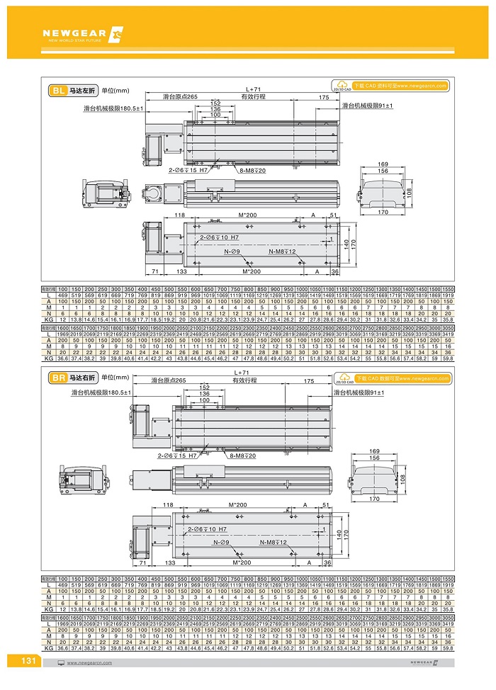 六、馬達安裝位置:無減速機構(馬達直結)泛用型減速機多方向馬達安裝位置可供選擇,讓機臺設計更有彈性。Bc(馬達外置)BL(馬達左折) BR(馬達右折) BM(馬達下折) M(馬達內置)