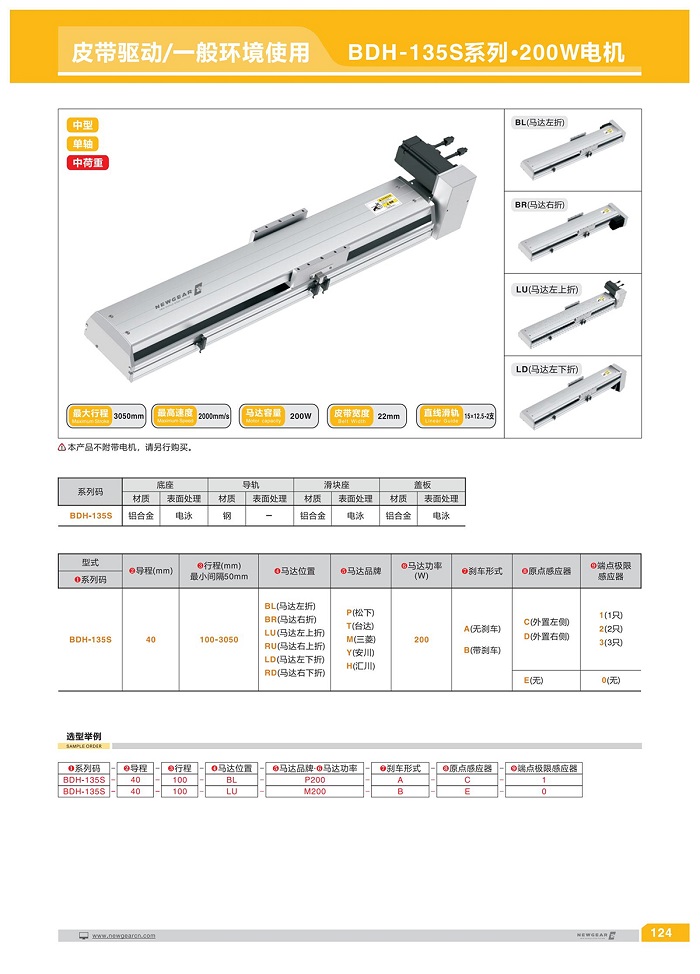 六、馬達安裝位置:無減速機構(gòu)(馬達直結(jié))泛用型減速機多方向馬達安裝位置可供選擇,讓機臺設計更有彈性。Bc(馬達外置)BL(馬達左折) BR(馬達右折) BM(馬達下折) M(馬達內(nèi)置)